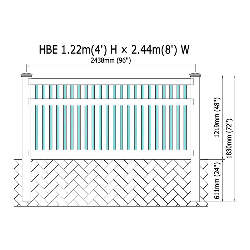 | পিকেট | 1 1/2 "x 1 1/2" x 40 '' x 22 পিসি (স্ট্যান্ডার্ড স্পেসিং) |