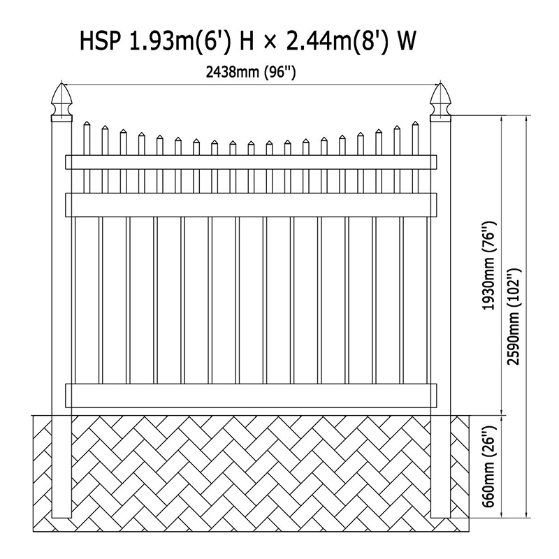 বেড়াটি 72 ইঞ্চির একটি স্ট্যান্ডার্ড উচ্চতায় দাঁড়িয়ে আছে, দৃশ্যমানতা এবং নির্জনতার মধ্যে একটি আদর্শ ভারসাম্য সরবরাহ করে। নির্দিষ্ট প্রয়োজনীয়তাযুক্তদের জন্য, আমরা বিভিন্ন উচ্চতা এবং প্রস্থ অফার করি, এটি নিশ্চিত করে যে আপনি আপনার সম্পত্তির জন্য উপযুক্ত ফিট খুঁজে পান। প্রতিটি বিভাগ আপনার প্রকল্পের প্রয়োজনীয়তা অনুসারে কাস্টমাইজেশন বিকল্পগুলি সহ 96 ইঞ্চির একটি স্ট্যান্ডার্ড প্রস্থ পরিমাপ করে।